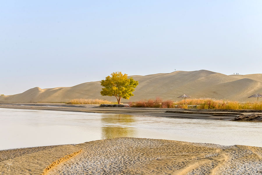 タリム(塔里木)河は天山に源を発するアクス川とカラコルム山脈に源を発する葉尓羌川及び和田川が合流したものです。最後にタイテマ湖に流入するとなります。アクス川は水量が多くて、タリム川の主な水源です。タリム川は中国で一番長い内陸河川で、全長2179キロ、流域面積は102万平方キロです。世界でも第5大の内陸河川だそうです。中国では最大な盆地―新疆ウイグル自治区のタリム盆地の大部分が含まれていますが、タリム盆地緑の経済と自然生態及び各族人民の生活を保障できる生命ラインです。“生命の川、母の川”と褒められています。 「タリム」は古語に“湖と砂漠に注入する川の支流”という意味だ...