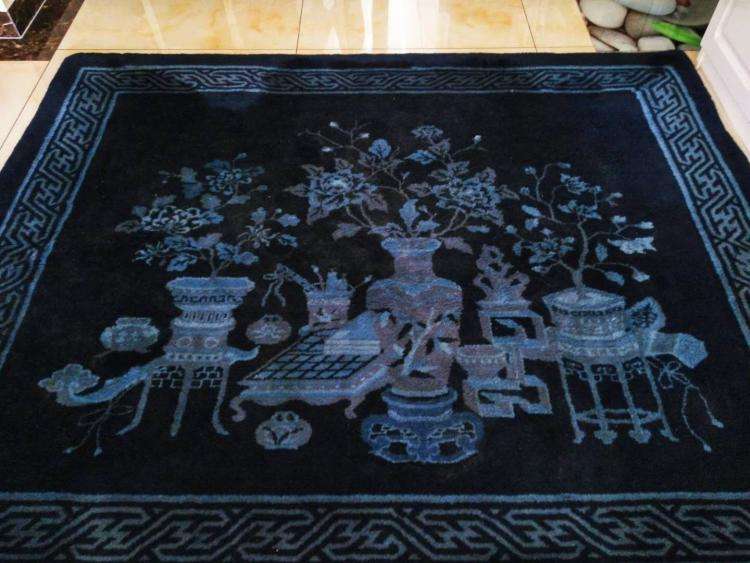 パオトウは内モンゴルで一番最初に羊毛でカーペットを作った地域です。図案は大自然に由来し、山水、雲、鳥獣、花、琴棋書画などあります。