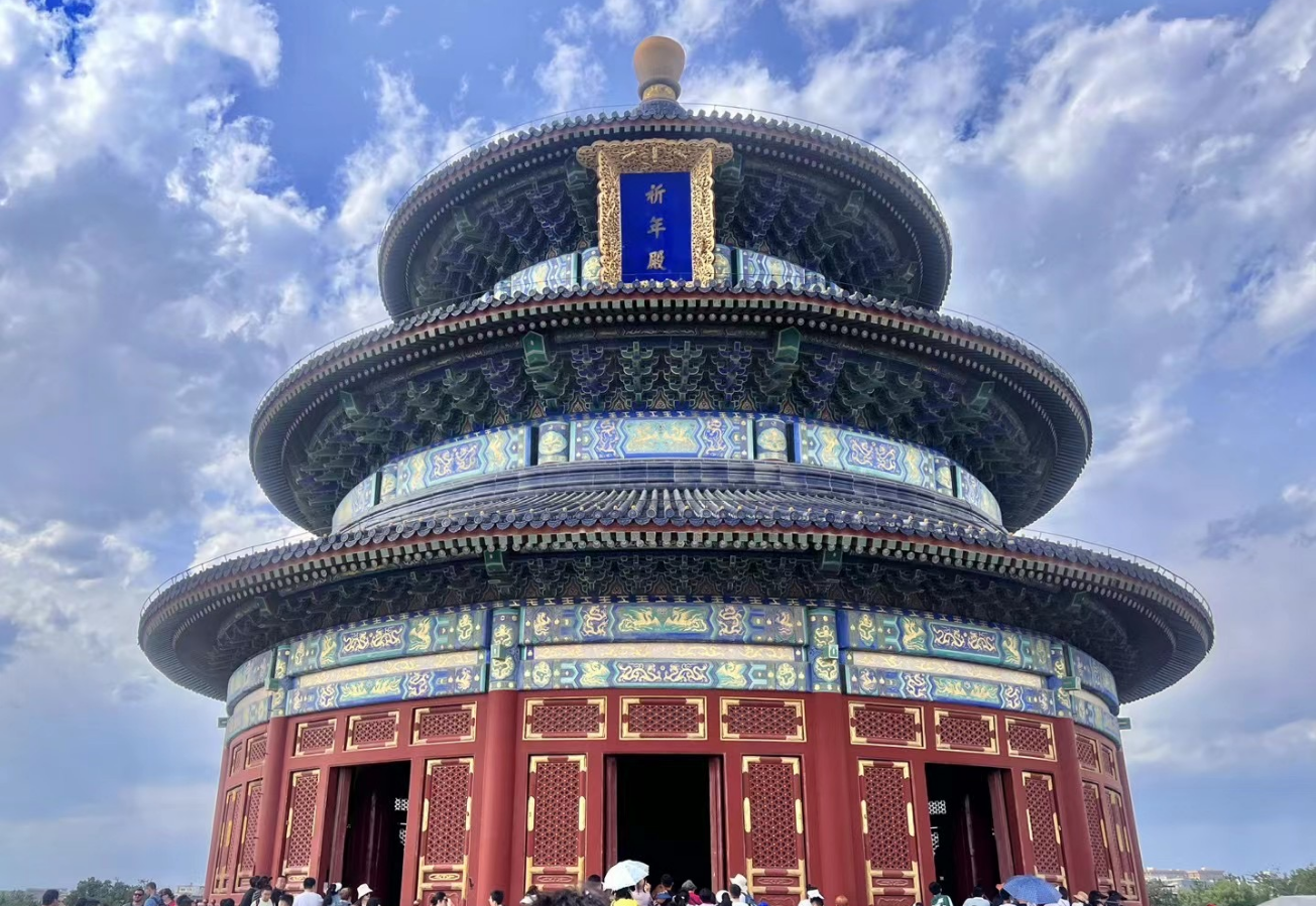 現存する中国最大の祭祀建造物で、祈年殿は皇帝が豊作を祈願するところで、丸い瑠璃瓦の屋根を持つ建物。天壇の中で最も荘厳で美しい。三層の屋根は全部で28本の木の柱だけで支えられており、ほかには梁も釘も一切使用していない。