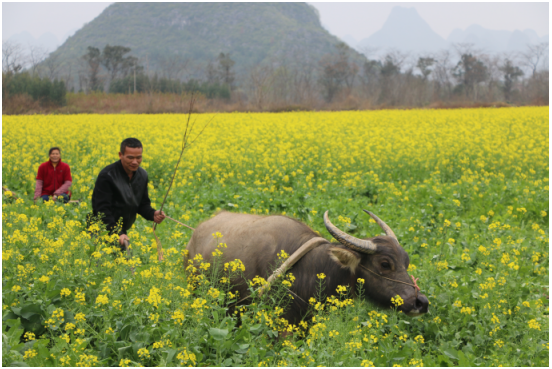 菜の花畑で美しい農村 桂林市・柘木鎮
