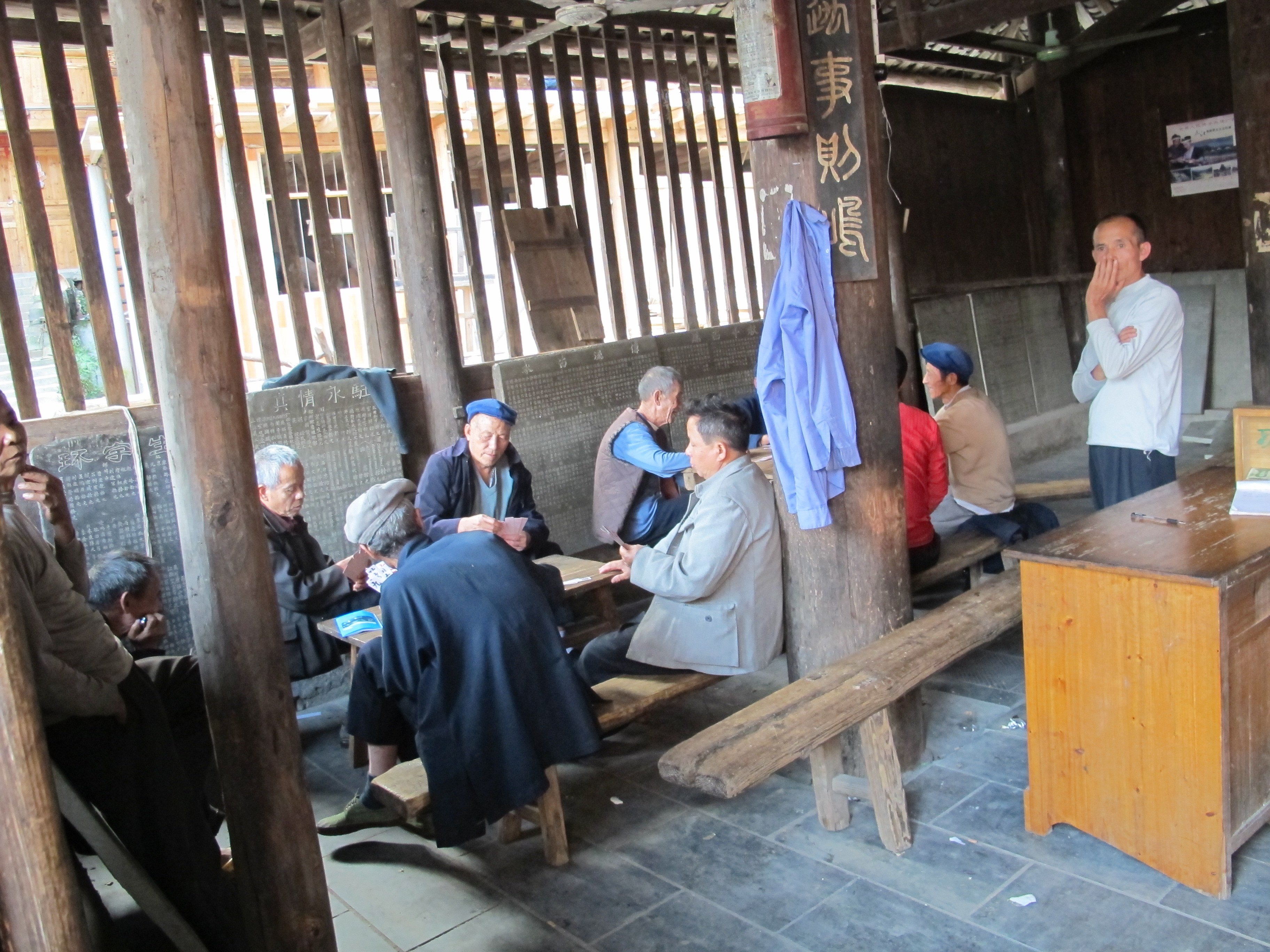 (馬安鼓楼) (鼓の中には毛沢東と鄧小平の肖像が飾られている) (鼓楼は村の老人クラブになる)