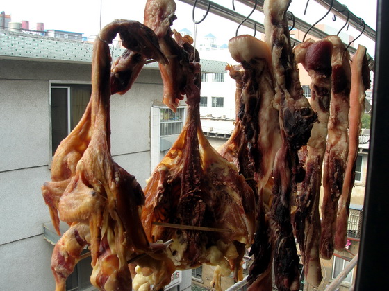 桂林では、干し肉を作る一番いい材料は「五花肉」だと言われています。これらすべては全部旧正月のため用意するのです。
