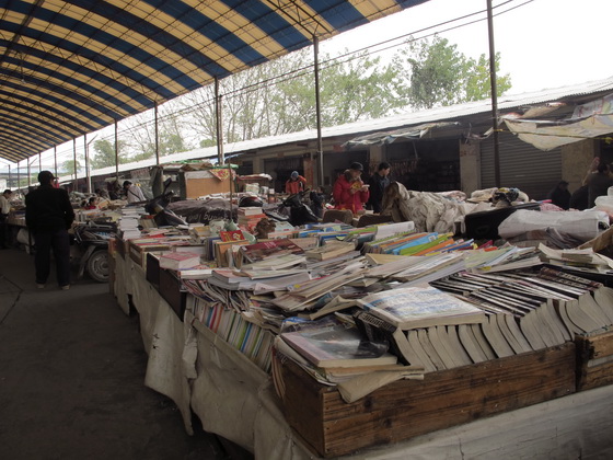 ここでは本の屋台が一番多いです。古本と言いますが、結構新しい小説、辞書も変えます。値段は新書の十分か二十分の一の値で買えます。大変得です。日本語の辞書と小説も買えますよ。