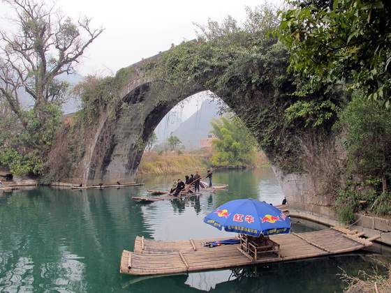 遇龍河」は広さ4.2メートル、高さ9メートル、長さ36メートルあります。明の永楽十年(1412年」に作られ、虹式単拱橋に属しています。全部条石で建てられ、粘着剤を使っていませんでしたがす百年を経っても橋はまだ丈夫です。橋は素朴典雅で、民族の特色があります。中国のとても有名な映画「劉三姉」のロケーションになったかとがあります。1944年、日本軍が村に侵入してきたとき、地元の人が橋の対岸の「天作寨」を占拠して9ヶ月間続いて必死に抵抗して、村を成功に守りました。。そのことを記念するためいに橋の上で「遇龍村抗戦勝利碑」を建てました。文革大革命の時、その石碑は壊され、遇龍河の中に抛り出されました。1987年、川の底に石碑の下半分を引き上げ、元の所に立て直しました。