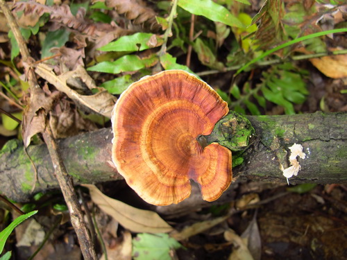 一生懸命に藪を抜けて、ここまでt辿り着いて見ると「何だ、食べられないキノコか」とがっかりしました。