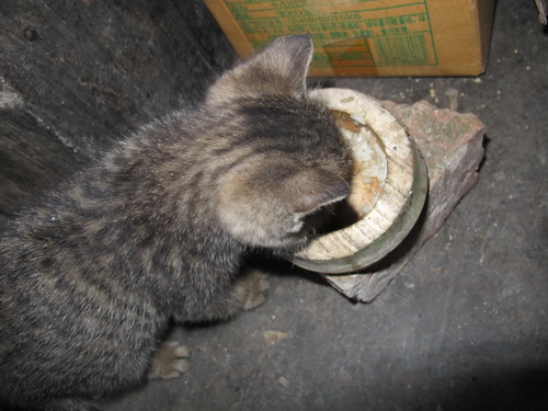 竹の節のの所を切って、小猫の食器を作っています。面白かったです。