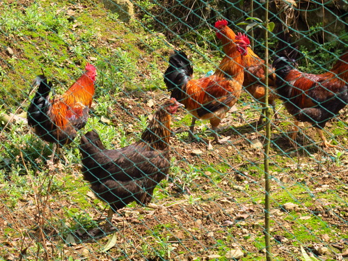 普通は雌鶏たくさん飼うのですが、ここはほとんど雄鶏でした。どうも違いますね。
