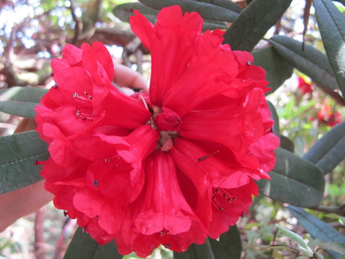 火が燃えているような真っ赤な馬纓杜鵑です。