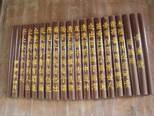 これは周敦頤が書いた「愛蓮説」の全文です。中の「出淤泥而不染、濯清漣而不妖」(泥から出でて染まらず、清漣に洗われても、色っぽくありません。)と言う言葉は花の中の君子ー蓮の上品な品質を賛美することによって、中国の文化人の中で非常に有名になりました。