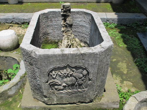 これは中国っぽい石彫ですね。これは花鉢を置くために使っています。