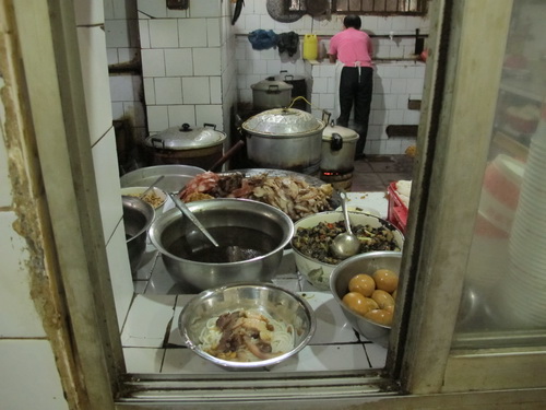 よそから来るお客さんはよくスープをいっぱい入れて、ビーフンを食べますが、それは間違っています。せっかくのいい味が悪くなるからです。スープを入れずに「滷水」を十分にかき回してから食べたほうが正しいです。食べ終わってまたスープを飲むのです。