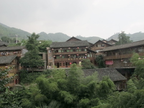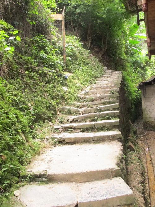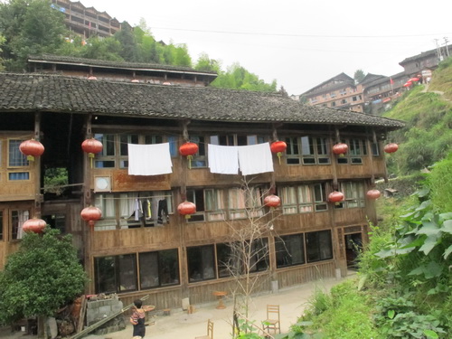 「龍脊」は龍勝各族自治県平和郷に属し、桂林から100キロぐらい離れています。朝の8時半からシャングリラホテルを出発し、11時ごろ「龍脊」の「平安壮寨」に着きました。「平安壮寨」はチワン族の村で、村の人はみんな同じ「廖」という名前を持っている人たちです。
