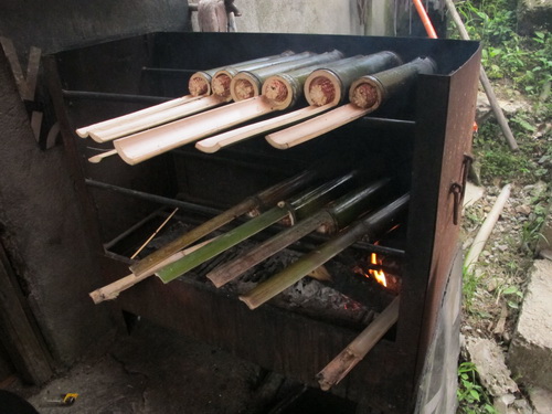 村の人は「竹筒飯」を作っていました。
