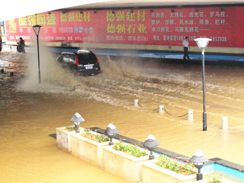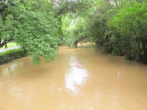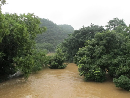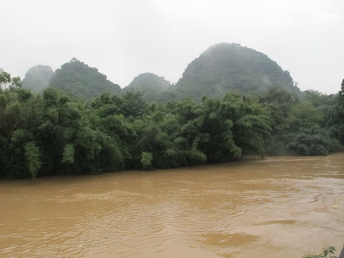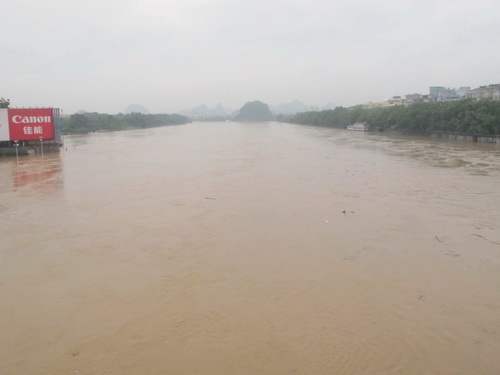端午節が過ぎて、桂林では連続的に豪雨が降りました。昨日の夕方六時ごろから今朝五時までまた集中豪雨が降りました。そのせいで今日桂林市の灕江などの川はみんな氾濫しました。今年は初めて川下りが欠航しました。