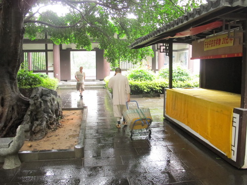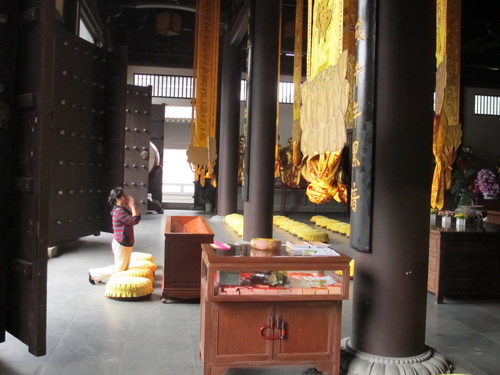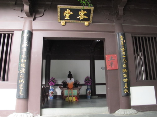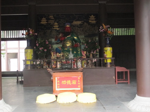高い階段を上がって、「天王殿」の門に来ました。お寺の正門は「山門」と言います。「天王殿」に入ってすぐ厳かな雰囲気が感じられました。仏殿の真ん中にいつもにこにこする弥勒が供えられています。弥勒佛の両側は威厳たる「四大天王」です。弥勒の後ろは韋駄天です。
