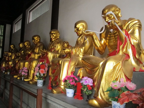 「大雄宝殿」の両側に十六の羅漢が並んでいます。佛塔と大殿を回る時順周りに歩かなければならないことに決まっています。