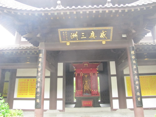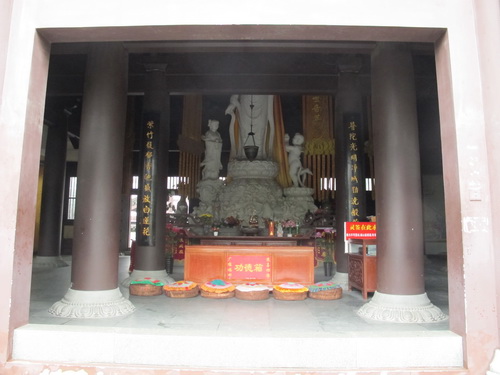 観音殿の中の観音像は四川省雅安産の漢白玉で作られました。高さは6.8メートルで、中国国内では一番大きい室内白玉観音像です。