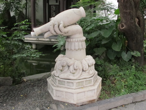 「棲霞寺」は桂普陀山の西麓にあります。お寺の前の広場に「渾融」和尚の彫像が建てられています。昔「渾融」和尚のお墓も彫像のある場所にあったそうです。真ん中の建物は「天王寺」で、両側はそれぞれ鐘楼(右)と鼓楼(左)です。