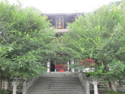 「天王殿」の前の両側に青々しい楡の木が二本植えられています。「天王殿」は有名な書道家「愛新格羅啓功」が書いたものです。