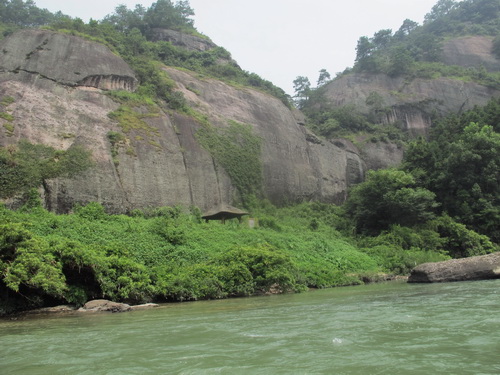 資江は昔「夫夷水」と言い、中国の華南地区の一番高い山-猫児山から源を発しています。資江は桂林のほかの川と違って、南から北へ流れ、洞庭湖に流れ込み、長江水系に属しています。(桂林の川はほとんど北から南へ流れて、珠江水系に属している)。歴史の中で、資江は湘桂(湖南省と広西省)地域の重要な商業通路でした。両岸の岩には今にも当時の船を引く紐の痕跡が残っています。