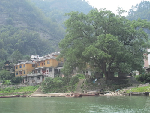 「資江下り」は1990年から始まりました。私は十年ぐらい前にゴムボートに乗って「資江下り」をしたことがあります。22.5キロの水路は4、5時間もかかりました。水鉄砲と柄杓でほかの観光客と戦いました。よく日に焼けたので、数日経って、顔も背中も皮がむけました。現在はほとんどエンジンの付いた鉄の船に変わりました。