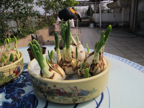 旧正月のために買っておいた水仙と風信子の花でした。
