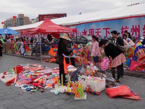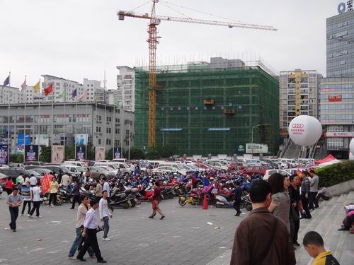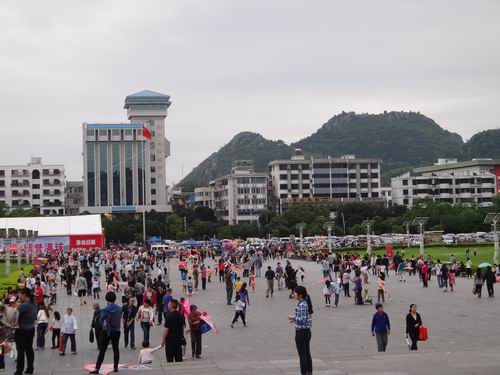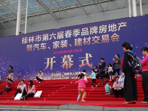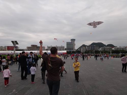 ところが30日の昼から天候が良くなり空が晴れてきました。筆者が桂林会展中心周辺に何かイベントがあるかと足を向けました。案の定、「房•車節」の会場に訪れた市民たちで賑わっていました。とにかく気分転換に来た人や見物に来た人、あるいは本気にマンションや車を見に来た人などで会場に溢れていました。みんなは雨による憂鬱の気持ちを一掃してせっかくのメーデーの休みを楽しみたいと思っていたのでしょう。市民は誰でもこの「目の保養」になるチャンスを見逃したくはないという気持ちも十分理解できます。それに外の広場で楽しそうに凧を揚げたりした親子もたくさんいました。凧を売っていた売り子もこの時期の商売を把握しようとしました。