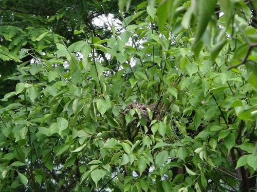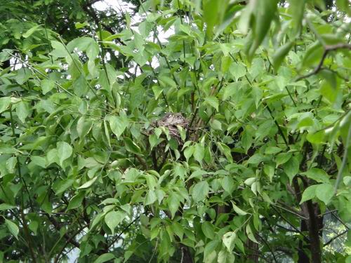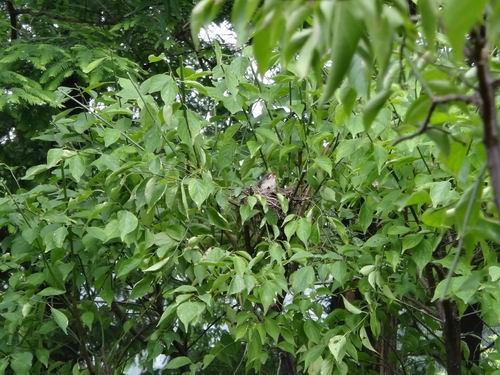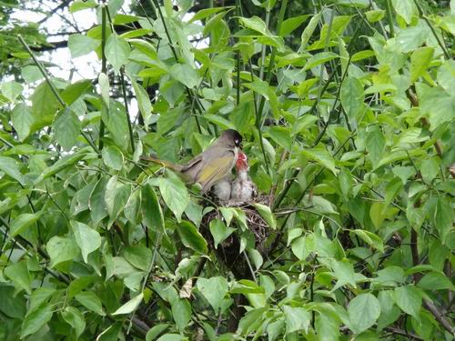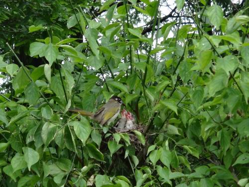 昨日、桂林市内のある公園でさりげなく散策したら普段めったに見られない一コマがありました。何人かのカメラマンは低い樹林の中で大きいカメラを設置して物静かに待機し、何かを撮ろうとしているじゃないですか。それに5、6M離れた先の低い樹木の方向にレンズを一斉に向けていました。「きっと何があるに違いない」と筆者もそれに不思議に思い、好奇心に駆られました。そこへ足音を忍んで近くに寄って声を低めて礼儀正しく尋ねましたが、みんな黙っていて誰一人として答えてくれた人がいなかったのでした。仕方なく筆者がその方向に向けて自分で探すしかできないと覚悟していましたが、この時一人のカメマンが渋々筆者に「あそこに鳥の巣があるよ」と小さい声で教えてくれました。目を凝らして見れば緑の樹木の葉っぱと対照的に何本かの木の小枝に切られた痕がありました。「あー、小鳥の巣があった」と筆者も興奮の気持ちを抑えきれないでしたが、周囲の静かな雰囲気に感化して口からの言葉を懸命に控えました。