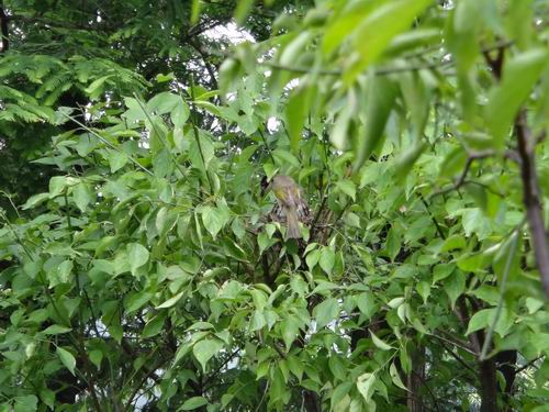 筆者の持ったカメラが一眼のものじゃないですが、辛うじてこの珍しい場面を収めることに成功しました。筆者が立ち去り際に、例のカメラマンはやはり小さい声で「内緒してねと」と僕に頼みました。筆者もカメラマン達の愛鳥の気持ちが十分理解できて雛は順調に巣立つようにと心から願うばかりなのです。
