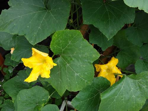 普通カボチャの蔓に徒花が多く付けていて実らないです。