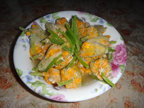 みなさんはご興味があればカボチャの蔓や花を捨てないで試しにこのように調理してみてください。きっと期待通りの健康料理ができるとお請け合いします。
