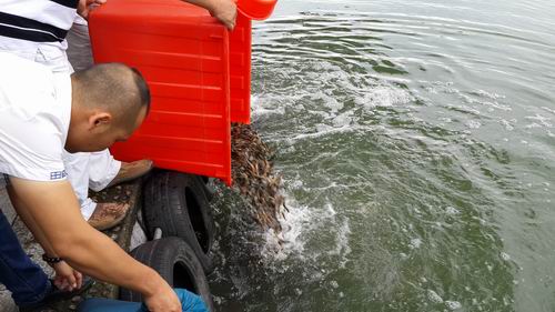 それから魚を金塔や銀塔で有名な杉湖の畔に持って行って、そこで皆先を争うように湖水に放していました。放流された泥鰌などは気持ちよさそうに深い所に泳いでいき、瞬く間に見えなくなってしまいました。これで信者たちは放生による功徳が達成され、筆者も少し生態保護に尽力したことに安堵の胸を撫で下ろしたように感じました。