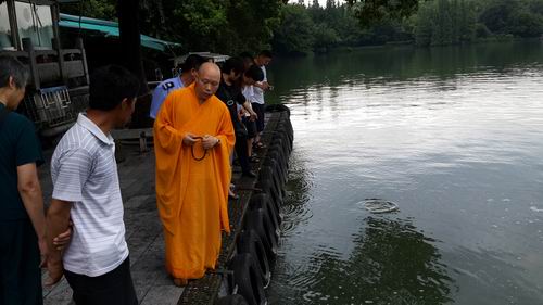 金塔と銀塔で有名な杉湖で、今回の放生の場所とされました