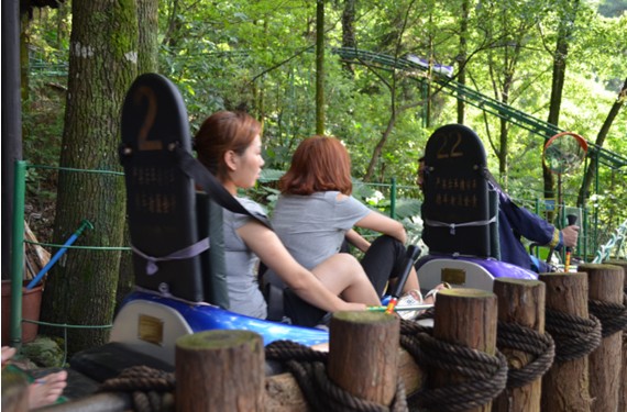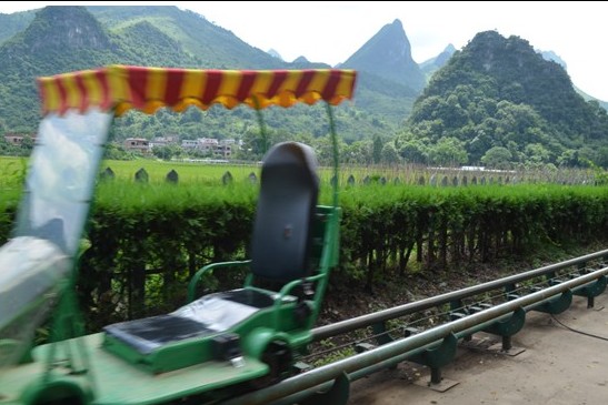 利用できる観光手段その一、2人乗りの滑り車は自分でスピードをコントロールできます。