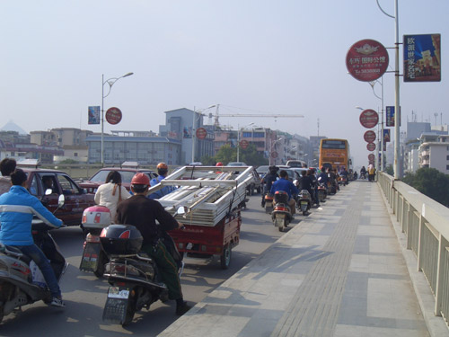 ところが、桂林の電気自転車には上記のメリットだけではないようです。乗る人が殆ど免許がなくてある程度交通ルールは知らないので、追突されたり、轢かれたりする交通事故は後を絶たないということです。かつて安全のため交通規制を強化しようとして、すべての電気自転車を禁止すればいいという意見もあれば、中国の実情や市民の実生活を見れば、全面禁止はあり得ないという意見もあります。こういう賛否両論にジレンマする桂林市の関係部署に一日も早く適切な対応策を検討してほしいです。しかし日増しの増加と交通渋滞に手の施しようがないようです。結局一日放任すれば一日分の電気自転車が町に溢れることから、予断が許さない状態です。さすがに「桂林」という町だけあって、益々電気自転車の‘競輪’になるのではないでしょうか?とにかく乗る時によく交通ルールを守り、怖い事故から自分を守ろうと願うしかできません。