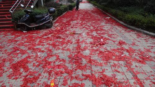 お正月になるとマンションの路上でむやみに爆竹が鳴らされ、ゴミがいっぱい散らばっていて、誰でも気にしないようです。