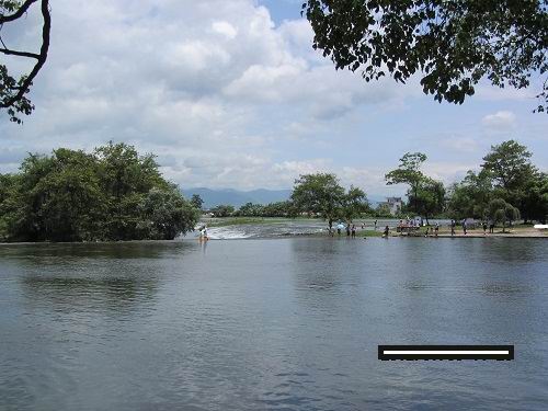 むこうの白い波が立っているのが大天秤であり、長さ334Mで七割の海洋河の水を堰き止めて湘江に流れるようにしています。
