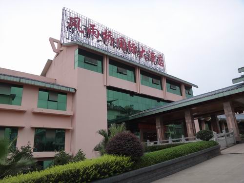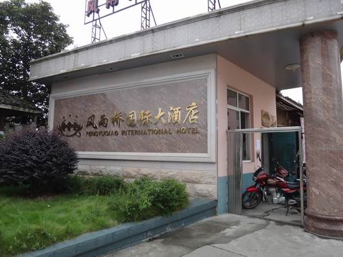 三江県にある風雨橋国際大酒店は三つ星のホテルで、地元で一番いいホテルとして利用されています。側に三江鼓楼が高く聳えています。