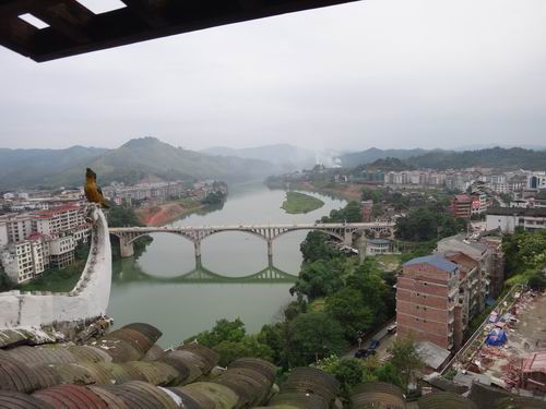 ここからでも三江風雨橋国際大酒店の屋根がはっきり見えますよ。