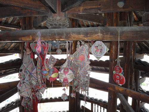 この鼓楼が出来た当時に記念物として、トン族の女性の手作りの「御守り」を飾りました。