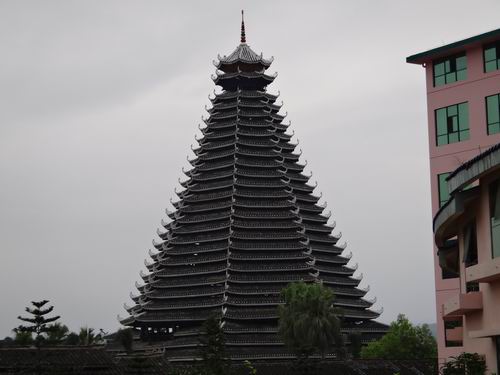 ホテルに隣接している三江鼓楼はスマートな形をして木造で出来ており、ぜひ登ってみたいものですね。