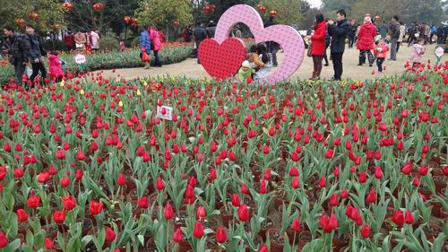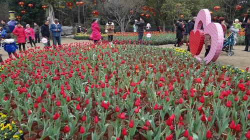 2013年2月10日は、中国の伝統的お正月の一日に当たり、桂林市でもお正月祝いのムードを盛り上げようとして市の訾洲公園でチューリップ展覧会を開催することになりました。公園によるとこの日から三日間のうち、市民の身分証を見せれば無料で入園できるとしています。公園責任者の話によると、今年が例年より更に種類の多いチューリップを導入して展示するとして、これまでなかった規模で展示して来場者に楽しんでもらうと言っています。「訾洲」はもともと桂林市街地の漓江川にある中洲であり、霧雨に煙る時、水墨画のように見えたことから、昔から「訾洲煙雨」と呼ばれ、古い「桂林の八景」にも納められました。更に秋になると訾洲の紅葉がきれいに染められ、漢詩の題材にまで取り上げられました。「訾洲の紅葉、桂林の秋」という風情が有名なものです。訾洲公園は歴史が古くて唐代元和12年(西暦817年)当時の桂州刺史兼桂管観察使(最高長官に当たる)だった裴行立が初めて公園を目指して開拓しました。園内でたくさんの植物を植え、また風流たっぷりの建築物などを建てたとされています。同じ唐代の大文豪である柳宗元は訾洲の景色に魅了し《訾家洲亭記》という紀行文を記し、桂林山水の美しさを称えました。約3年前に、桂林市政府が昔の訾洲の面影を再現させようとして必要な施設などを建築して数多くの植物も植えつけました。現在、見事に昔ままの「訾洲紅葉」や「訾洲煙雨」などを回復させたばかりではなく市民たちの気持ちのいい憩いの場所ともなっています。