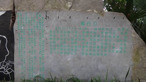 訾洲公園には昔から有名人の足跡が残ったとされる記念物も多く安置されています。これが唐代に初めて訾洲公園を開拓した桂州刺史に勤めた裴行立(774~820)を記念する石碑です。訾洲の美を称えた第一人者とされています。