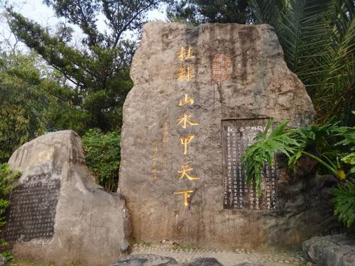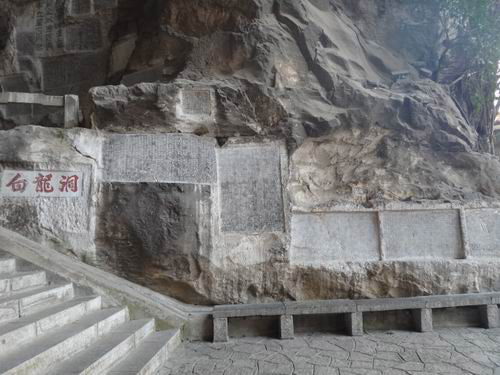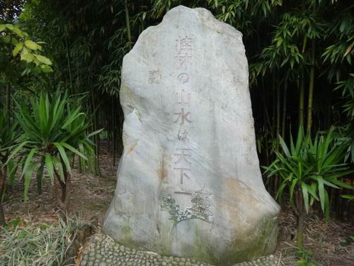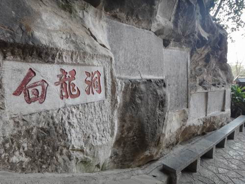 南渓山公園といえば、早くも1200余年前の唐代にさかのぼることができます。当時の最高長官とされた桂管観察史の李渤(西暦722~831)の手により初めて開発された公園なので、歴史的遺跡が多く残っています。記載によると李渤は左遷させられた有能な役人でも詩人でもあったと言います。2年間の桂林赴任にもかかわらず、みずから自然環境に恵まれるとする南渓山や隠山(別の西山公園にある山)を不毛の地から立派な公園に、心血を注ぎ開発したと伝えています。彼がいよいよ桂林を後にし、故郷の洛陽に帰る時、名残惜しい気持ちで「留別南渓」という有名な漢詩を詠みました。「常に嘆く春泉が去りて帰らず。我も今、此より去れば帰らぬ。別れた後、情を残す処を知らんと欲すれば、手で種ゆる岩花が次第に開(さ)く」といいました。この漢詩が南渓山の白龍洞の入り口に刻まれています。リアルに当時の李渤の気持ちを表す詩作として広く読まれています。