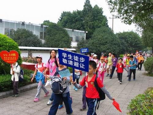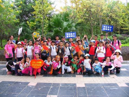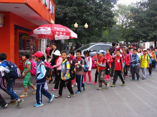 昨日、桂林市育才小学校は中間テストを済ませた隙間を利用し、生徒の往復12キロの遠足を決めました。