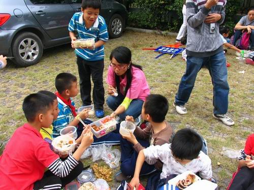 片道が6キロというのは大人にはそれほど長い距離ではないですが、小学生にとっては限界かもしれません。片道4時間をかけてゆっくり歩くようにしましたが、それにもかかわらず体力がかなり落ち、これ以上歩きたくない生徒が出てきました。ちょうどお弁当を食べる時間に重なり、みんなが一分も早く親の美味しい料理を頬張るようにしたいものでした。おそらくこの時の料理はどこのよりも美味しく感じられたに違いないでしょう。美味しい料理をお互いに分かち合ったり相手に譲ったりして和気藹々な雰囲気でした。その後、生徒たちが先生の指導のもとで様々なゲームを楽しんだりしていました。筆者は生徒たちが教室の中では習えないものを多く習えたと信じています。