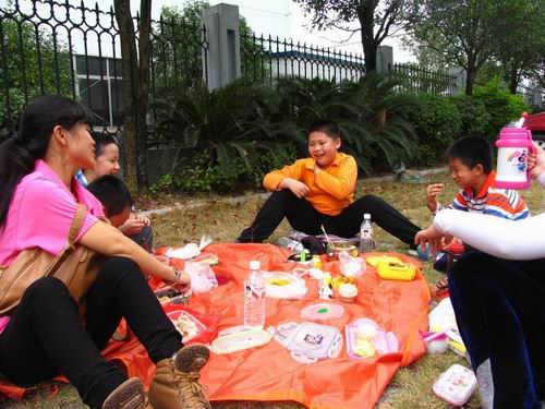 朝、8時ごろ、生徒たちは学校の校庭に集まり、クラスごとで列に並びました。幸いなことに空に薄雲が広がり、さほど暑くはなかったのです。生徒たちは普段の疲れた授業から一時に解放されたかのように皆、うきうきした表情で出発式に臨みました。その後、受け持ちの先生と保護者たちの引率で紀律もよく列に並んで校外に歩き始めました。今回の遠足コースが離江下りに行く桂磨公路となり、車が多い代わりに歩道が広くて歩きやすかったということでした。持参の弁当でその日の昼食に当てることになり、親たちがほぼ前日にどんなお弁当にするかに相当腐心したらしかったです。今回の遠足は久しぶりの集団のアウトドアで、生徒たちの心の中でかなり期待を高めたのではないかと保護者たちにみんな感じられました。出来る限り美味しいお弁当を作るという親の気持ちが十分理解できるものです。