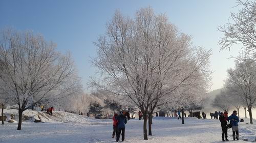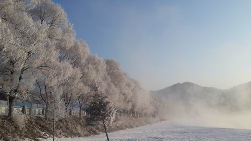 筆者が1月中旬ごろ故郷の東北地方にお正月過ごしに帰省しました。故郷は吉林省の蛟河市にあり、帰るには必ず吉林市を経由しないとならないです。吉林と言えば冬の景色は何と言ってもあのきらきらと銀色に輝く樹氷ではないでしょうか。調べによると吉林の霧氷は桂林山水、雲南石林、三峡と並び中国の四つの自然的奇観の一つとされ、恐らく吉林省の看板の景色として国内外に良く知られているではないでしょうか。それに吉林の樹氷の素晴らしさは、ほかの地方の樹氷は比較にはならないほどの醍醐味があります。吉林の樹氷は程よく木の枝に白く結晶し、透明に見える代わりに、絶対に木の枝の重荷にならないほどしなやかな感じがします。あたかも微細な氷の花が程よく咲いたように美しいです。