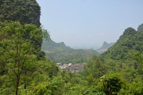 2014年5月1日、筆者が休みを利用し、またもや家族や友達とともに石頭城を訪れました。石頭城は桂林から39キロほど離れた葡萄鎮に属し、葡萄鎮から更に細い山道を車で10キロほど行けば着きます。城の地名は梅嶺間と呼ばれる村なのです。実際、筆者が11年前に一度行ったことがあり、その時、葡萄鎮からの山道がまだ舗装していなく砂利の道だけでした。10キロの道でしたが、約1時間以上もかかったという記憶です。