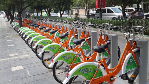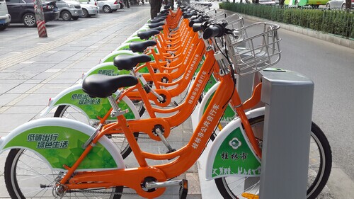 桂林の街にきちんとして並んだ自転車は街の「表情」を少し変えたようです。ただ屋根がないのは気がかりです。
